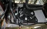 Отрываем капот, демонтируем пять болтиков, которыми закрепляется резиновая накладка. Снимем её. Убираем уплотнительную резиночку, чтобы не мешала выдернуть защитный кожух моторчика. Всё, обеспечен доступ к вентилятору. Далее отвинчиваем болты крепления по бокам. Пока работы под капотом завершены, перемещаемся в салон.