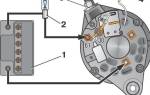 Особенность соединения генератора подразумевает питание с использованием блока предохранителей, а значит, далее цепочка ведёт к аккумуляторной батарее и замку зажигания. Генератор также сообщен с лампой, сигнализирующей о разряде АКБ. При запуске двигательной установки через три диода выпрямительного блока на обмотку устройства поступает питание. Исправность работы легко отследить по индикации лампы. Когда ключ в замке зажигания поворачивается в первое положение, сигнальная лампочка загорается на щитке приборов. Мотор запустится – она гаснет (если генератор исправный). Если лампа горит, устройство имеет явные неполадки.