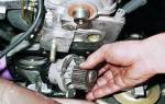 Как происходит ремонт или замена водяного насоса? Начните с демонтажа. В первую очередь отключите минусовую клемму от аккумулятора. Затем слейте охлаждающую жидкость из системы. Уберите адсорбер, пластиковый кожух двигателя и кожух ремня газораспределительного механизма. Установите поршень первого цилиндра в положение верхней мертвой точки, точнее, на момент сжатия.